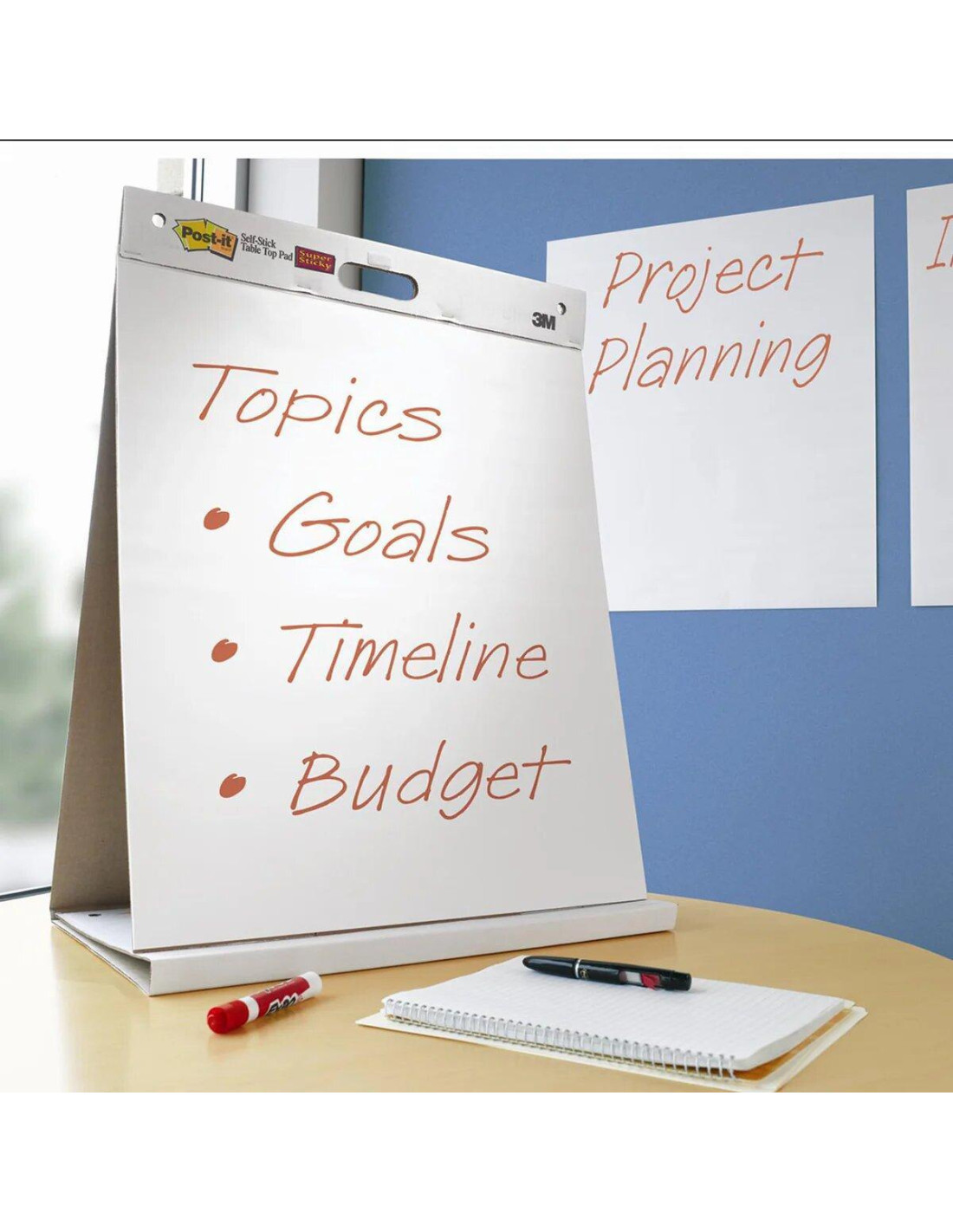 - Blocs de sobremesa - Ideal para reuniones, resolución de problemas y/o presentaciones - Bloc de reuniones portátil - Con 20 hojas con adhesivo en el dorso - Incorpora su propio caballete para usarlo sobre una mesa - Se pliega en plano para almacenarlo fácilmente - El papel de alta calidad resiste el traspaso de tinta - Cada hoja mide 58,4 cm × 50,8 cm.