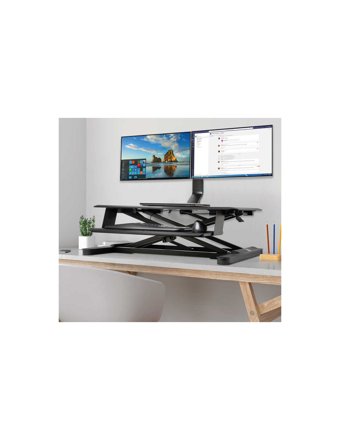 Diseñado para espacios reducidos. Con el brazo SmartFit® de ahorro de espacio para dos monitores, es muy fácil encontrar el ajuste ergonómico y correcto de los monitores, incluso en escritorios con poca profundidad. La instalación fácil y no permanente in