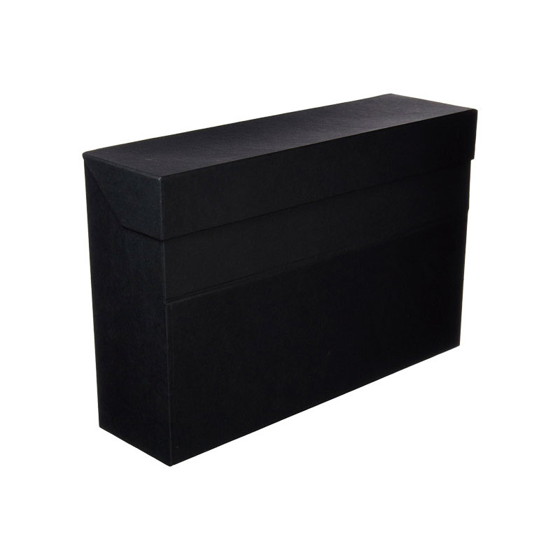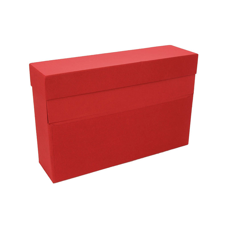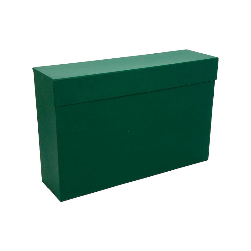 Caja de transferencia de cartón forrado. Dimensiones 39 x 25,5 x 11 cm.
