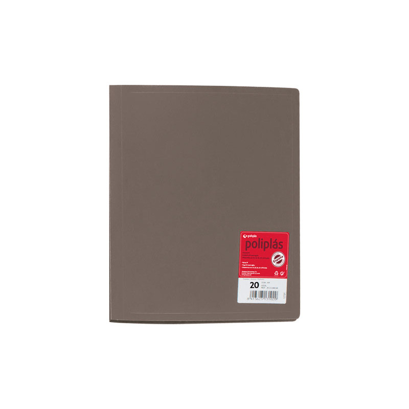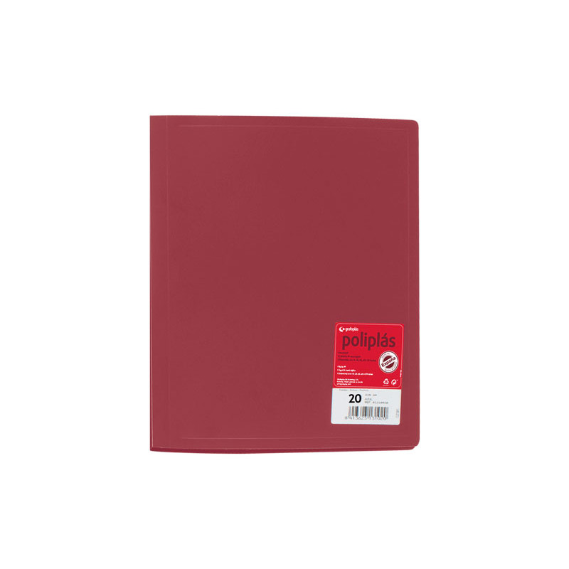 Carpeta con 20 fundas fijas. Tapas flexibles y fundas interiores en polipropileno.