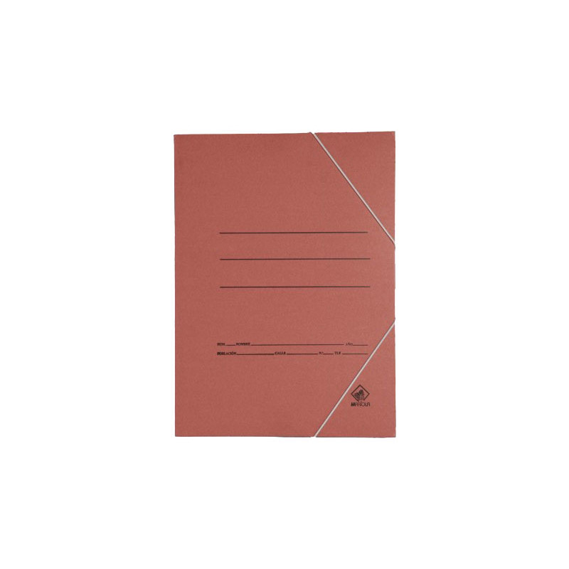 Carpeta de gomas sencillas, fabricada en cartón cuero. Formato folio y sin solapas.