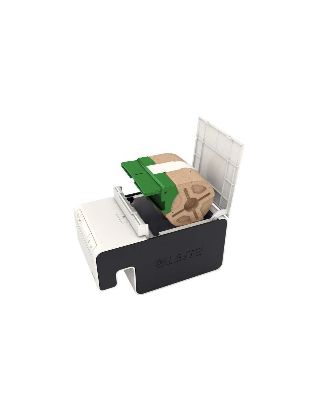 - Un sistema inteligente de cartuchos indica qué cinta hay cargada y cuántas etiquetas quedan.