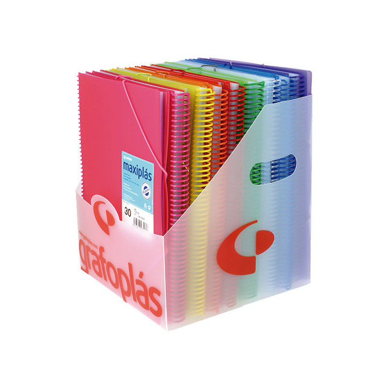 Con nuevos colores, más intensos y con más variedad. Carpetas con cubiertas en polipropileno rígido translúcidas, mecanismo de espiral en PVC. Cierre con gomas elásticas, fundas taladradas de polipropileno extra. Incluyen un sobre con cierre de cinta adhe