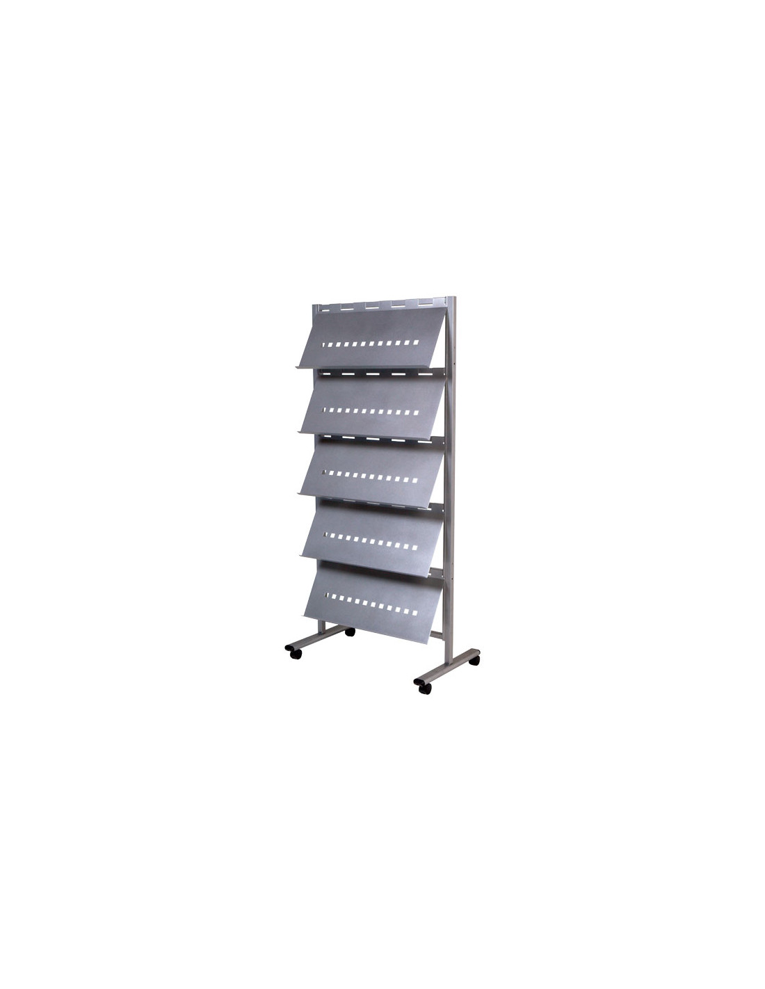 Separador móvil multifuncional. Con estructura realizada en acero que permite la fijación de cinco bandejas metálicas por ambos lados. Ruedas de serie. En pack de 5 unidades.