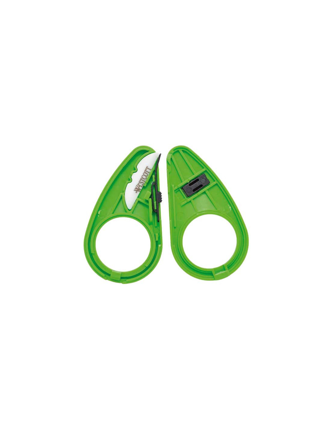 Mini cutter con cuchilla de cerámica, mucho más segura y más duradera que las de acero. Protección integrada de la cuchilla. Longitud de 10,5cm.