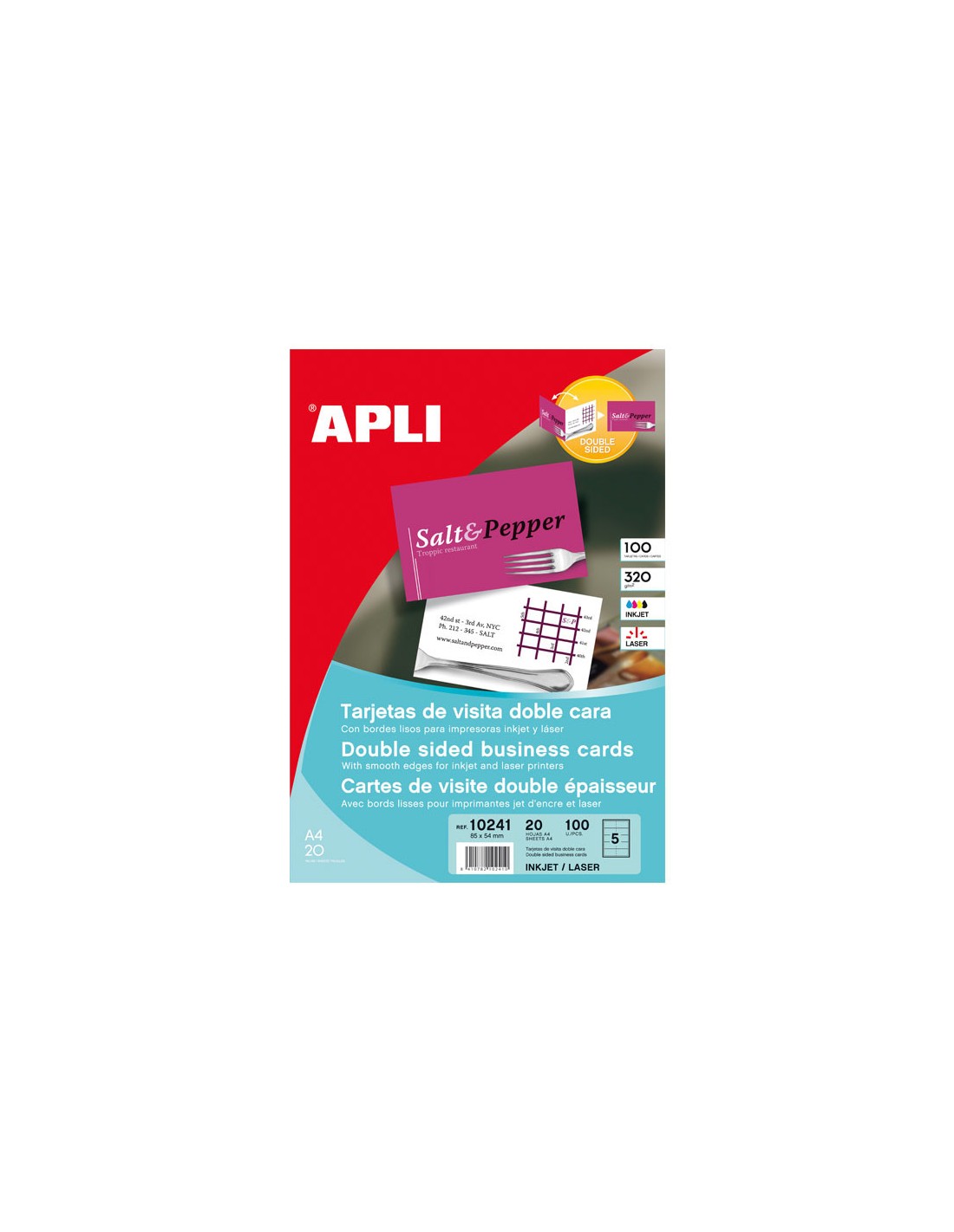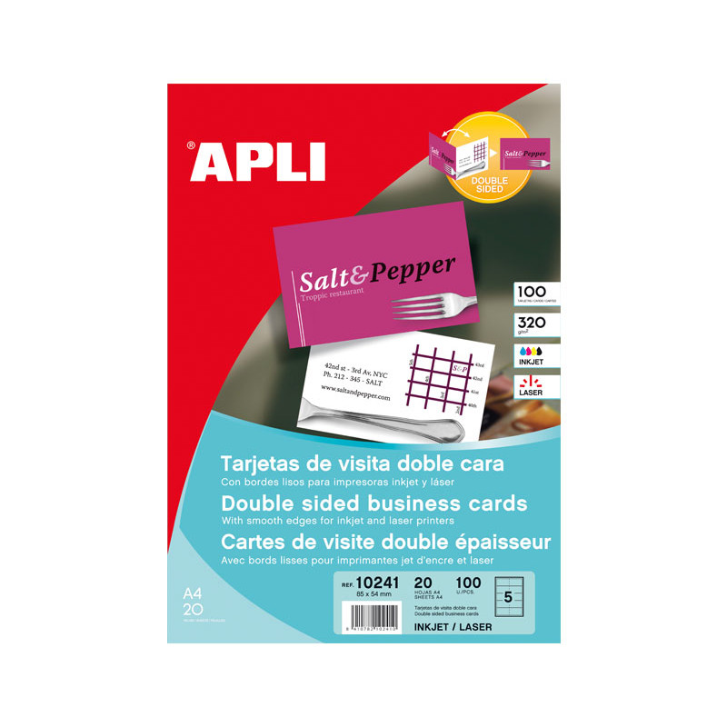 Paquete 100h tarjetas de visitas APLI 320gr doble cara - Blanco