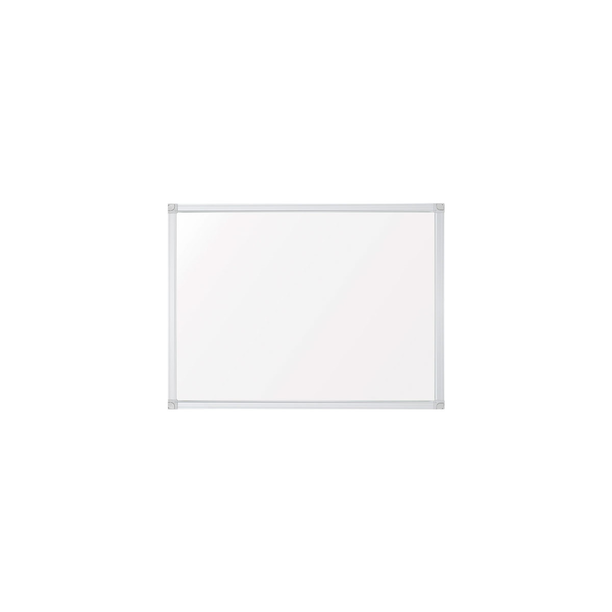 - Pizarra mural con superficie de acero vitrificado duradera y resistente a los arañazos - Apta para la escritura con rotuladores de borrado en seco y magnética - Se presenta con un marco de aluminio más ancho de lo habitual para darle un aspecto más profesional y elegante - Incluye fundas para las esquinas para ocultar las fijaciones a la pared y se suministra con una gran bandeja para rotuladores.