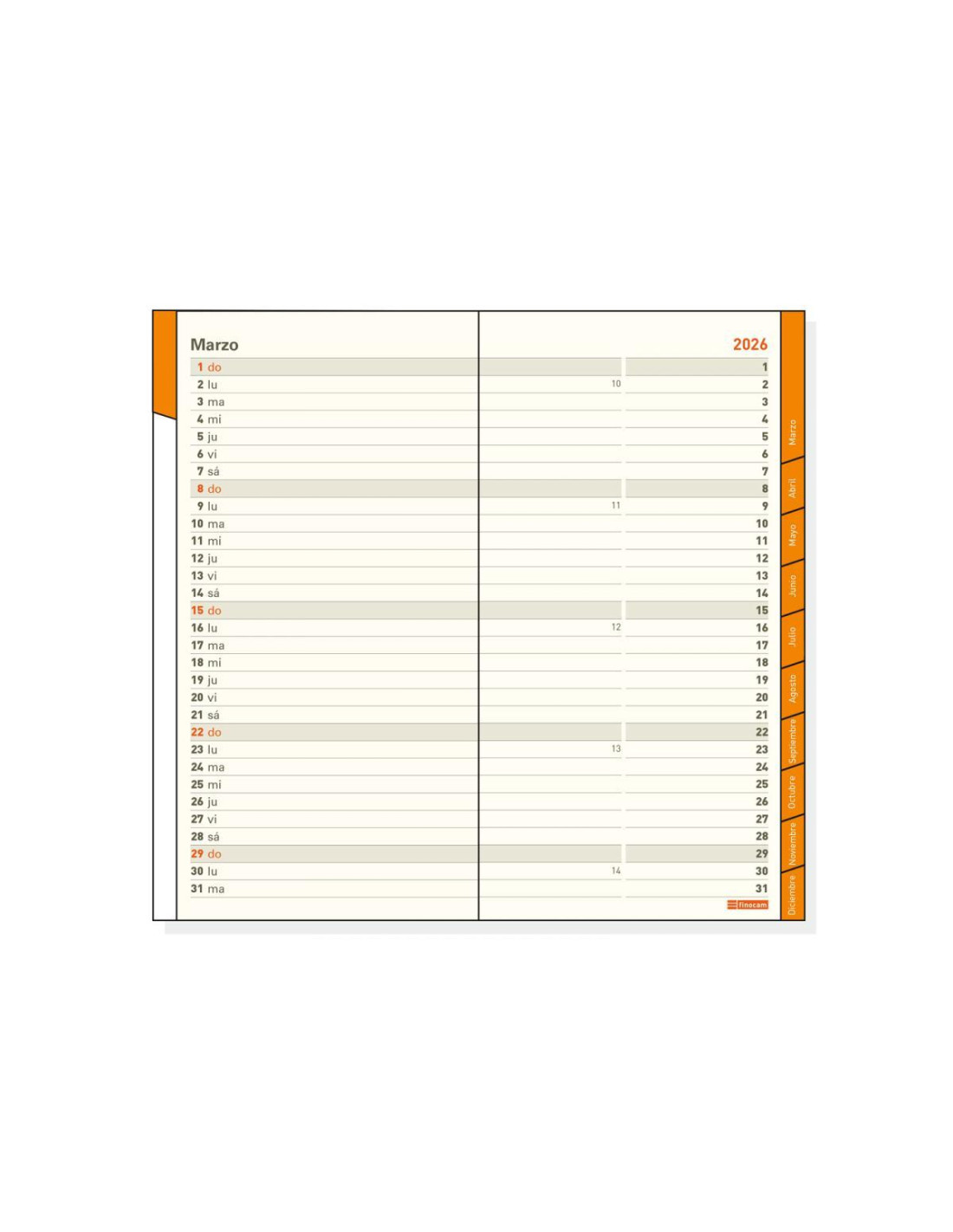 Recambio anual para agendas encuadernadas de bolsillo. Con esquinas microperforadas para localizar rápidamente el día en curso. Papel de 90gr FSC®. Recambio con visión de 1 mes completo con pestañas mensuales troqueladas. Contiene datos personales, festivos, calendarios, notas y teléfonos, etc.