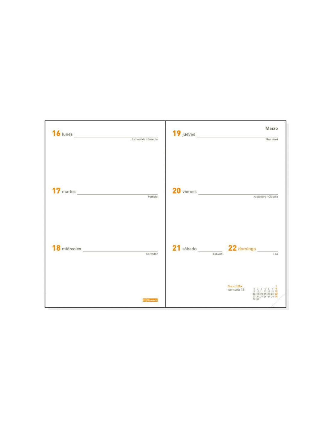 Recambio anual para agendas encuadernadas de bolsillo. Con esquinas microperforadas para localizar rápidamente el día en curso. Papel de 60gr FSC®. Recambio con visión de la semana completa, sin horarios. Contiene datos personales, festivos, calendarios, notas y teléfonos, etc.