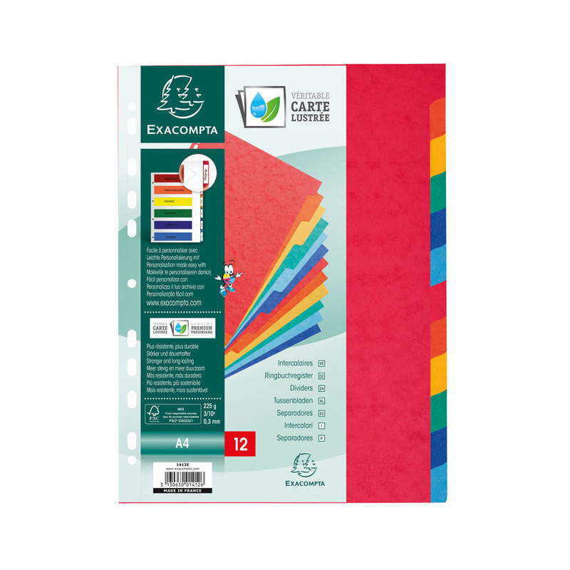 Separadores Separadores EXACOMPTA forever 12 posiciones EXACOMPTA CF1041843 Separadores en polipropileno 100% reciclado. Tamaño A4. Visualizar