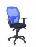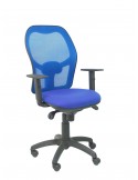 Silla de oficina ergonómica con mecanismo sincro con regulación de tensión y altura ajustable. Respaldo de malla transpirable en color azul. Asiento de espuma de poliuretano tapizado bali (tela). Para uso intensivo (8 horas). Ideal para trabajar durante varias horas puesto que ayuda a reducir las lesiones derivadas de malas posturas. Ideal para la oficina y para el hogar. Con brazos regulables. Base piramidal de bylon. Silla giratoria 360º. Rueda de nylon de rodadura interna con eje interno de acero (ø 50mm). Altura total 123/132cm. Alto asiento: 44/53cm.