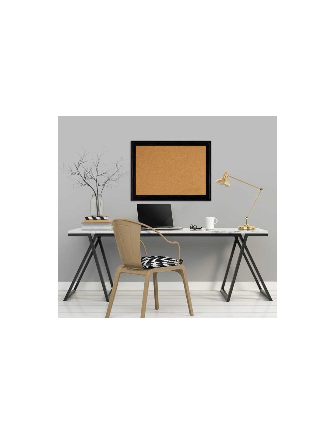 Tablero de anuncios de corcho. Marco de madera negro. Para el uso de chinchetas para fijar documentos y fotos sobre la superficie, larga duración. Medidas: 58,5x43cm.