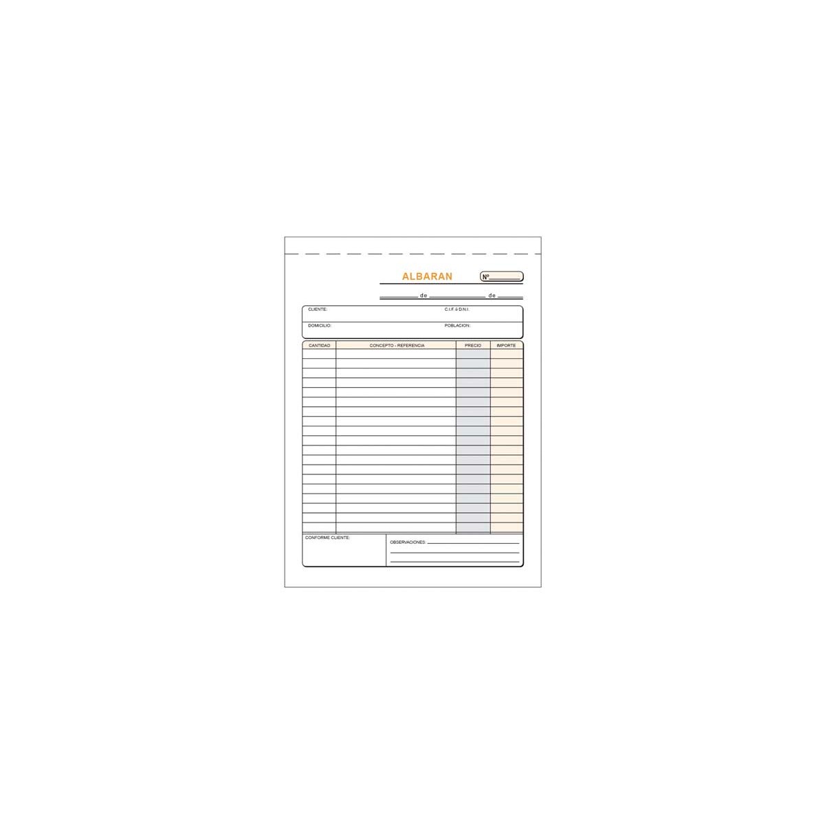 Talonario de albaranes con 50 hojas. Formato cuarto natural con triple autocopiante. Talonarios preimpresos a dos tintas. La copia queda en el talonario. Incluye separador de cartón. Papel original litos blanco de 50gr y papel autocopiante químico rosa y