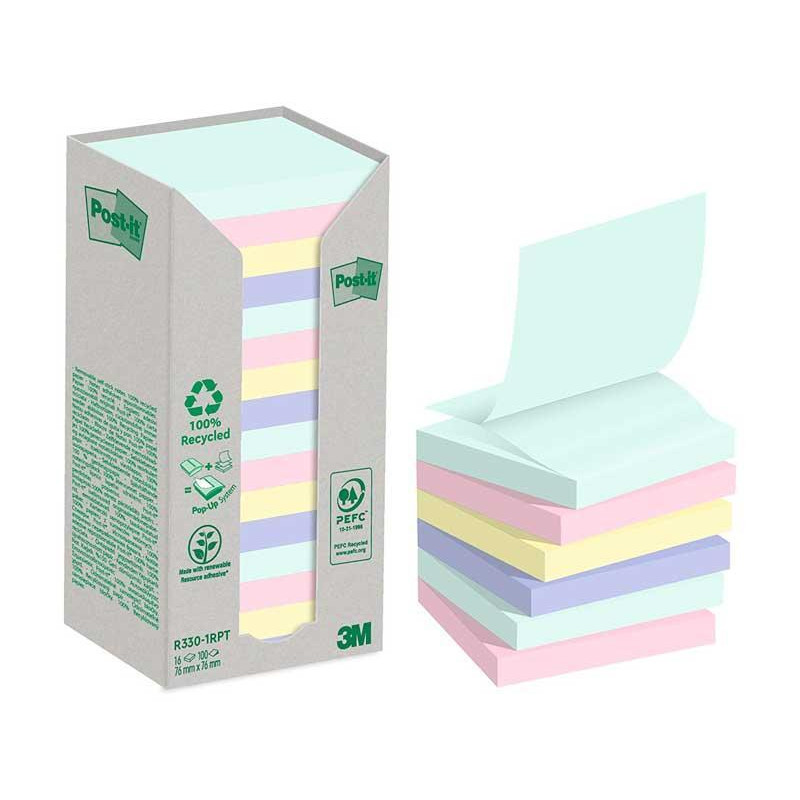 Torre 16 blocs z-notas POST-IT ecológicas 76x76mm pastel